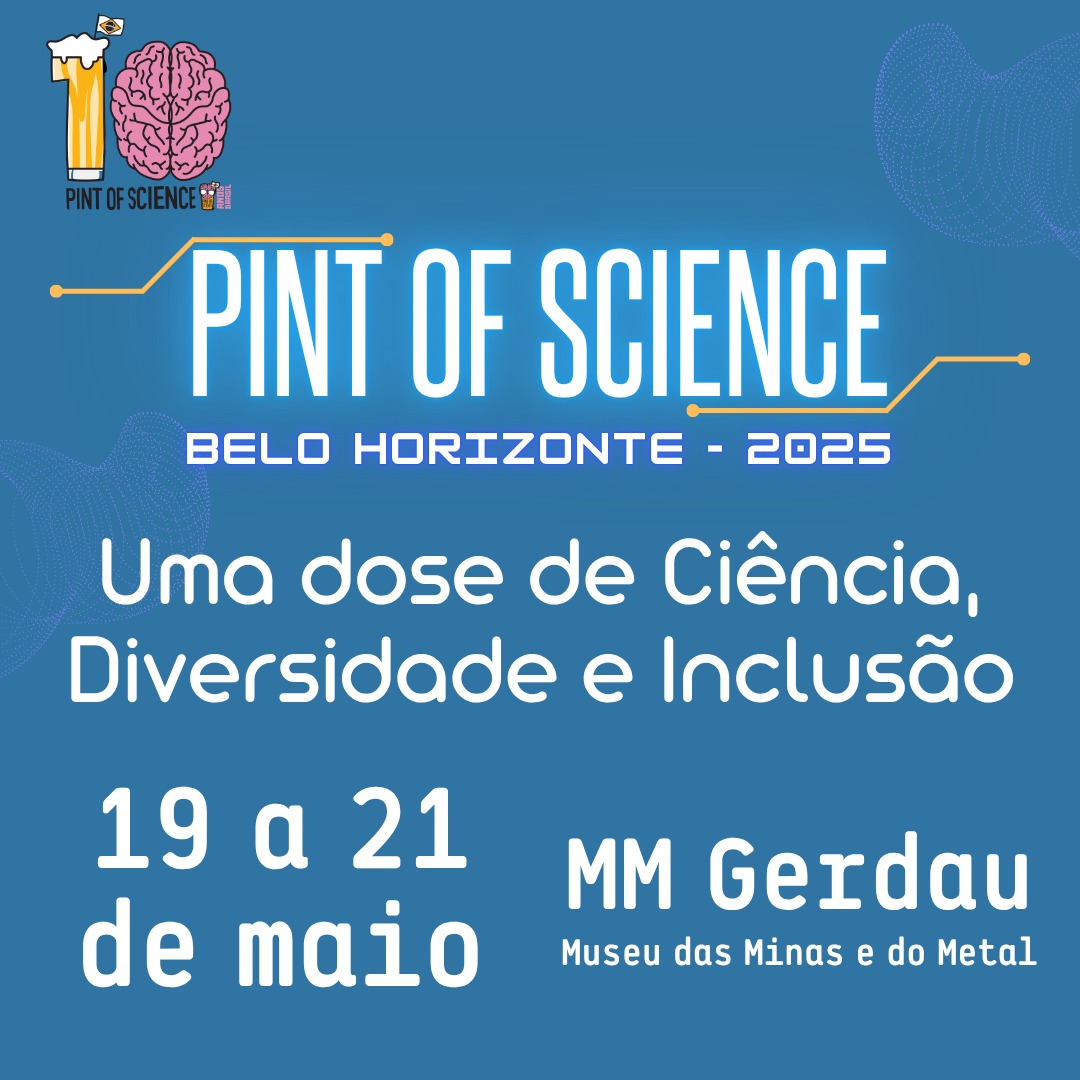 Vem aí mais uma edição do Pint of Science. Comemorando 10 anos no Brasil e 9 anos na capital mineira, a programação 2025 de Belo Horizonte reunirá diferentes pesquisadoras, pesquisadores e pesquisadories para compartilhar os resultados de suas pesquisas com o público e refletir sobre a promoção da saúde e qualidade de vida para as pessoas com deficiência e a comunidade LGBTQIAPN+.